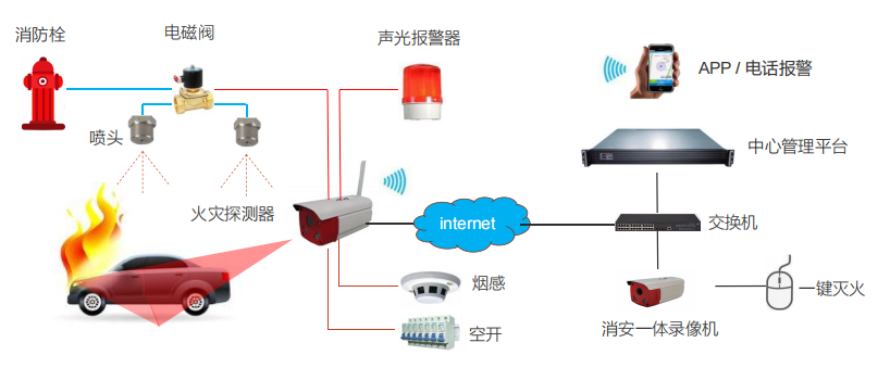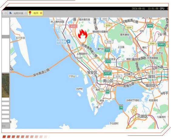 弹窗提示、坐标显示、声光报警、 自动灭火 /一键灭火、实况监控、 网络喊话、远处调 度、权限设置等实用功能。