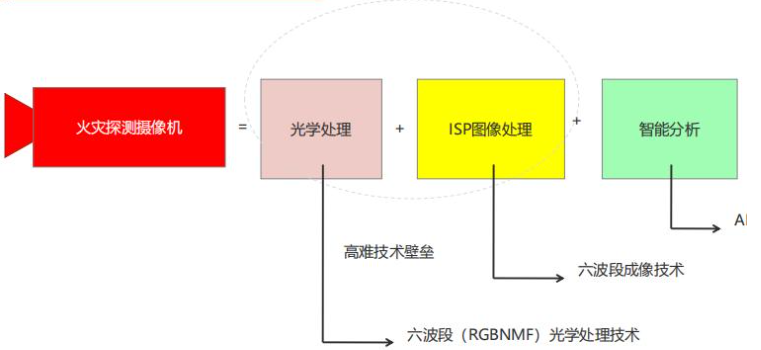 1、一种基于图像传感器的六波段及Al形态烟火识别摄像机