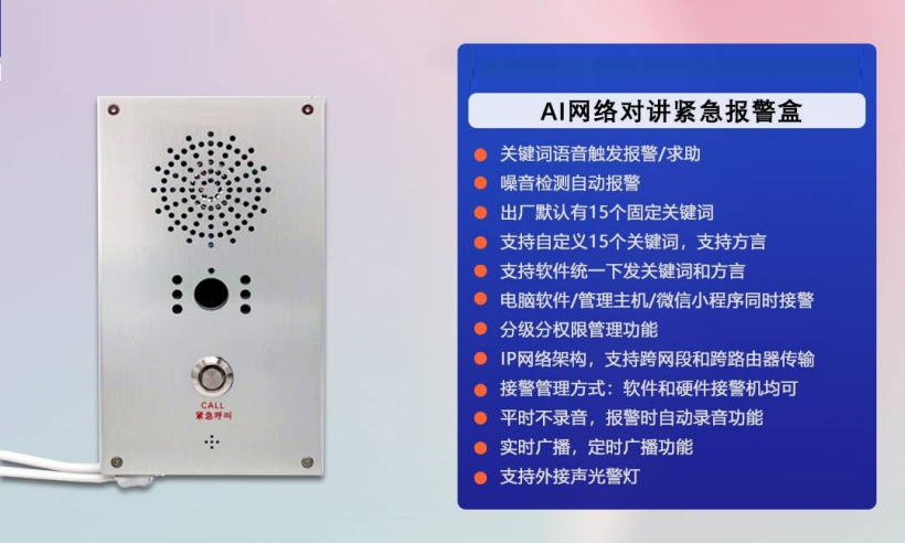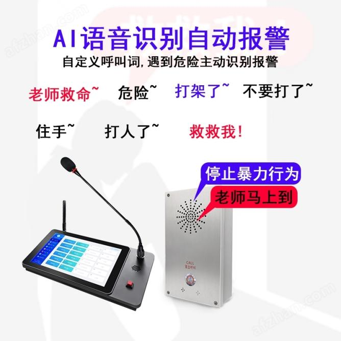 校园防霸陵语音识别自动报警一键报警终端,智慧校园AI语音识别报警防欺凌系统是一种基于人工智能和语音识别技术的校园安全系统,它可以帮助学校更好地管理和预防欺凌行为。